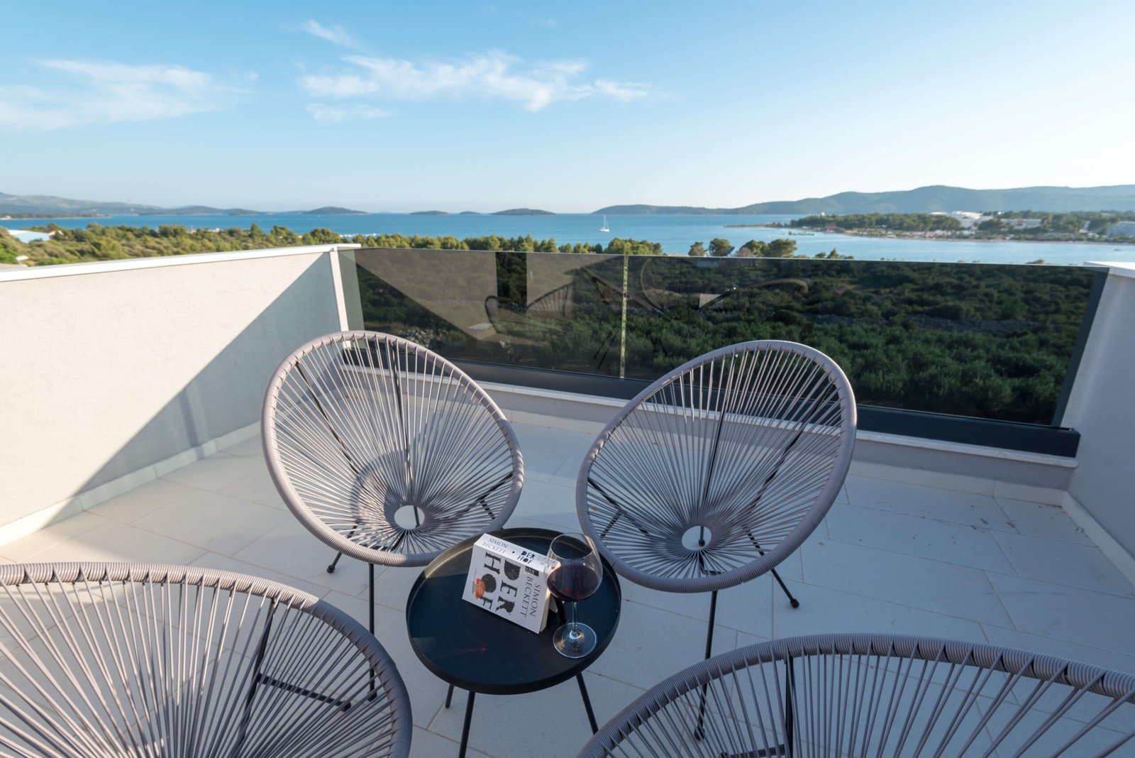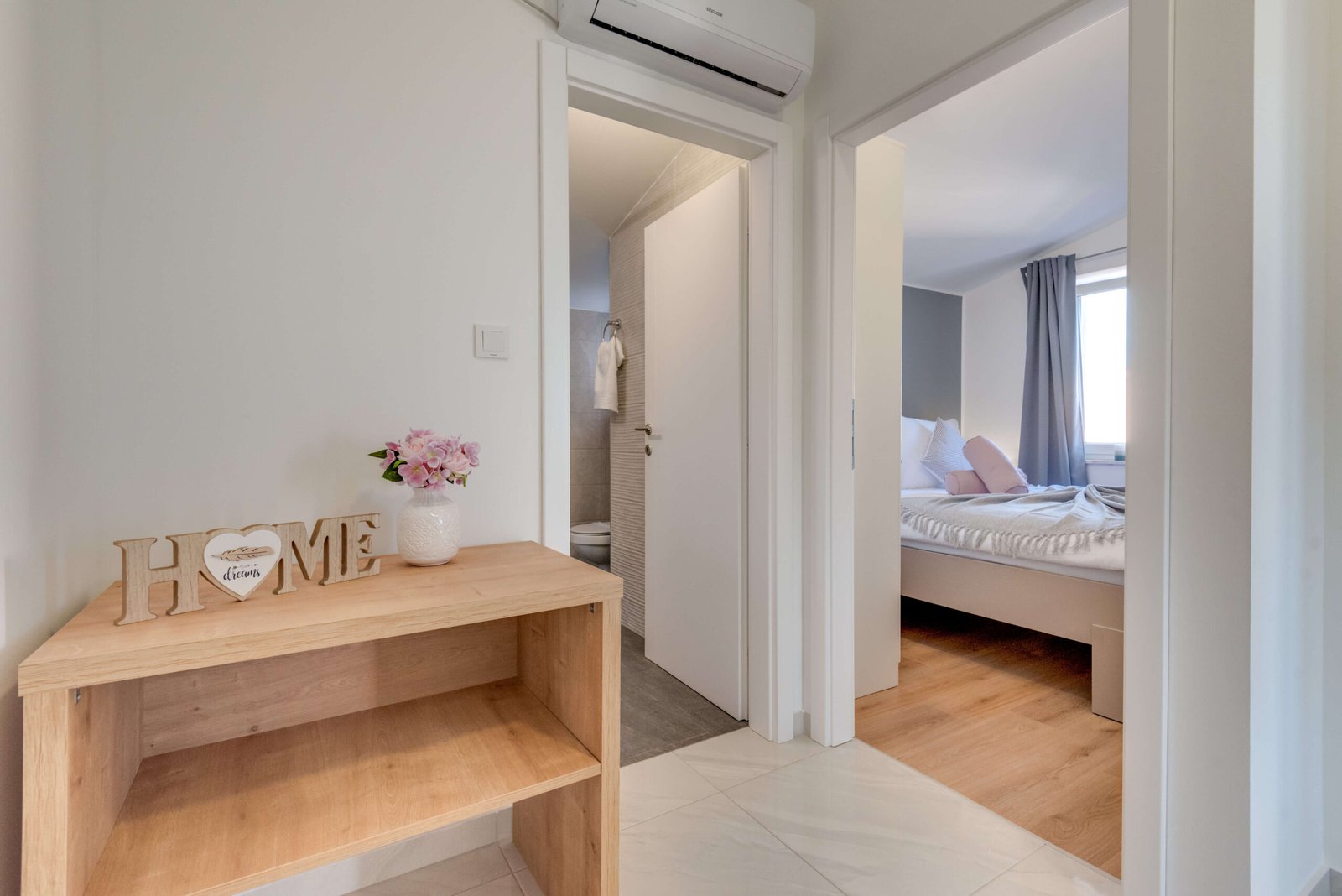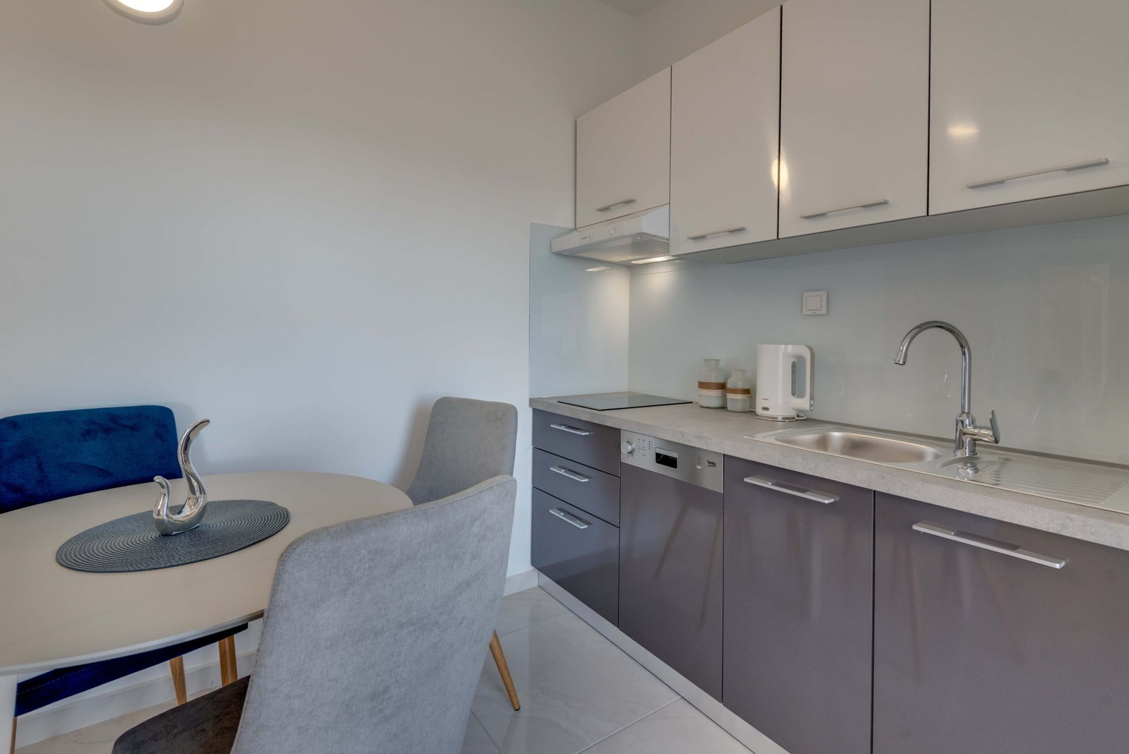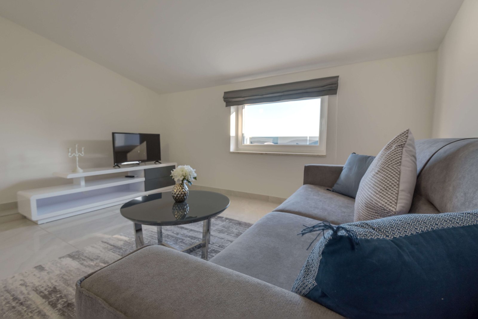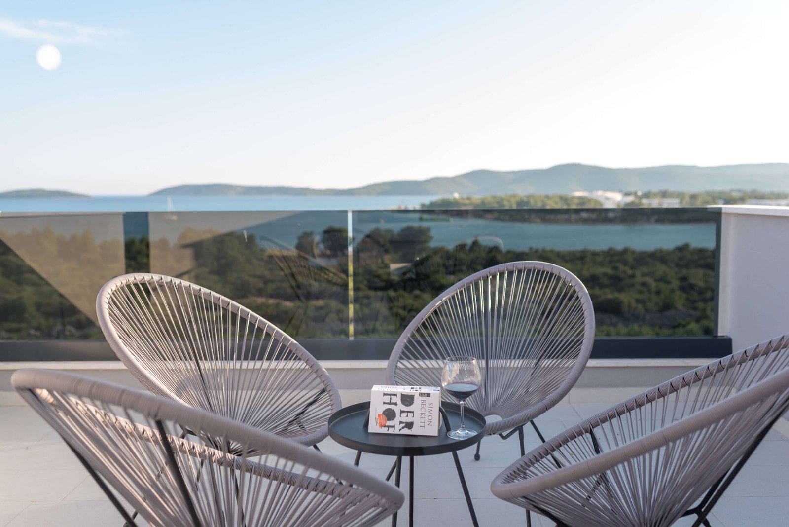 One-bedroom apartment located on the second floor, consists of: living room with sofa bed, one bedroom with double bed, a bathroom with shower, equipped kitchen and terrace with sitting area and sea view.